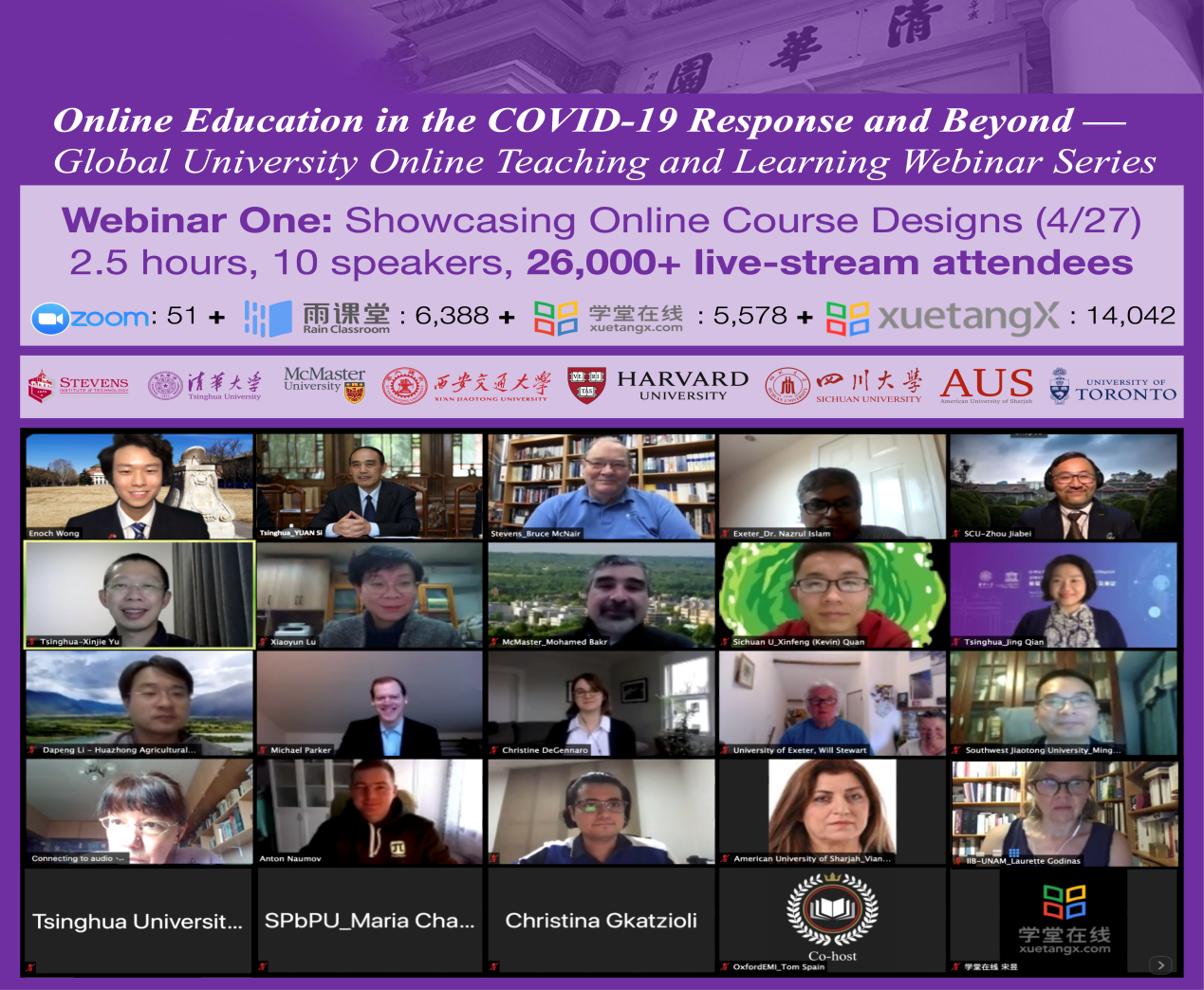 beat365英国官方网站4月29日电 4月27日晚,由beat365英国官方网站终身教育处、beat365英国官方网站国际处指导,beat365英国官方网站在线教学指导专家组、联合国教科文组织(UNESCO)国际工程教育中心(ICEE)联合主办,学堂在线协办的“在线课程设计展示云分享”召开。beat365英国官方网站校务委员会副主任、联合国教科文组织国际工程教育中心执行主任袁驷致辞,beat365英国官方网站在线教学指导专家组组长、电机系教授于歆杰作总结发言,beat365英国官方网站苏世民学者黄尔诺主持会议。来自亚洲大学联盟(AUA)创始成员单位及国内外知名院校的2.6万名代表,通过Zoom平台、学堂在线国际版、雨课堂等方式参加了云分享。