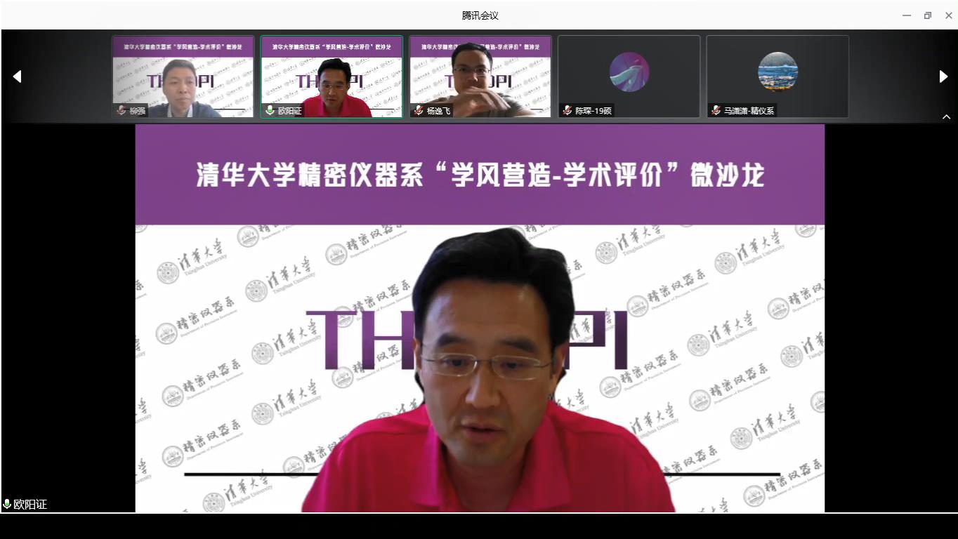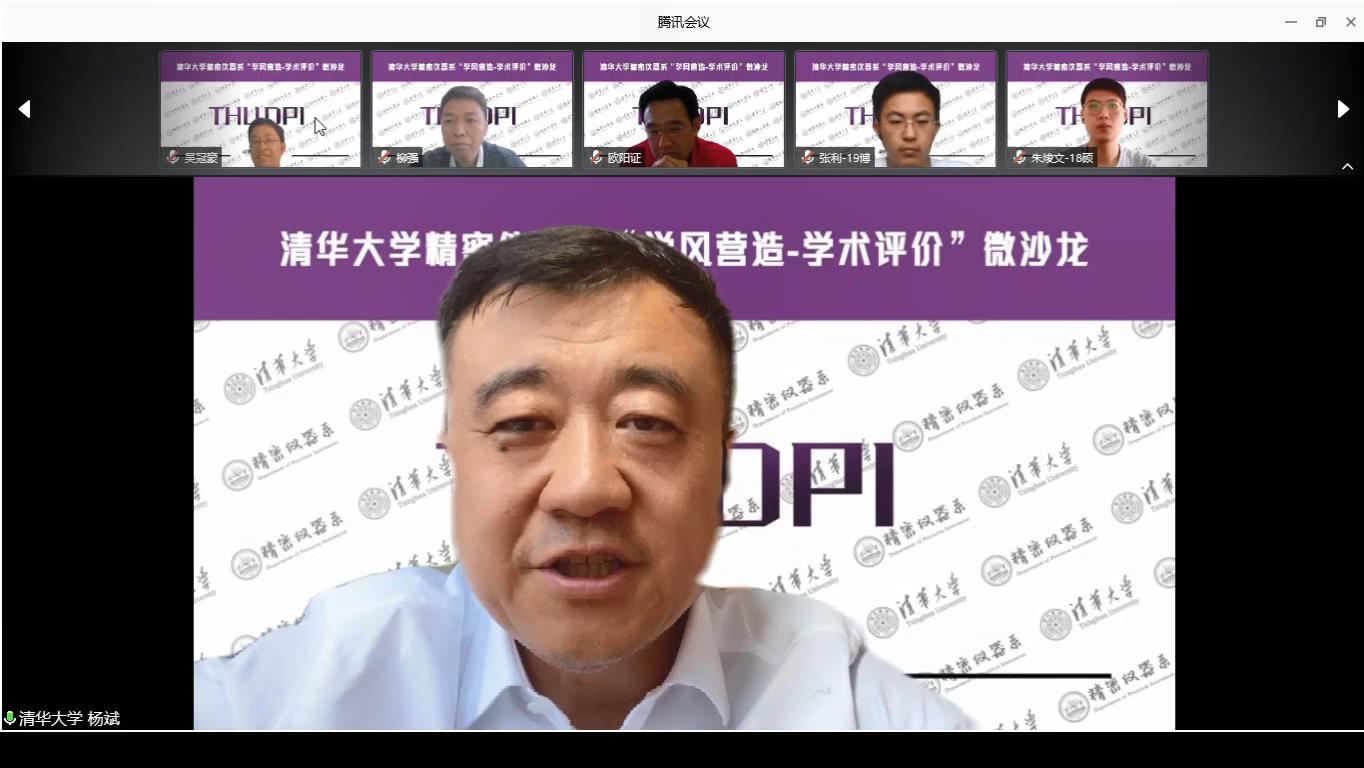 清华新闻网6月1日电(通讯员 林晨 赵启航 陈琛)5月31日下午,beat365英国官方网站副校长杨斌应邀做客精仪系“学风营造-学术评价”线上微沙龙活动,与来自精仪系各年级的12位研究生代表围绕学风建设方向与学术评价制度改革等话题展开深入讨论。精仪系系主任欧阳证、党委书记柳强、副系主任王鹏、党委副书记吴冠豪、研工组组长马潇潇,9字班级主任李杨等教师共同参与此次微沙龙,本次活动由精仪系2018级硕士生林晨主持。