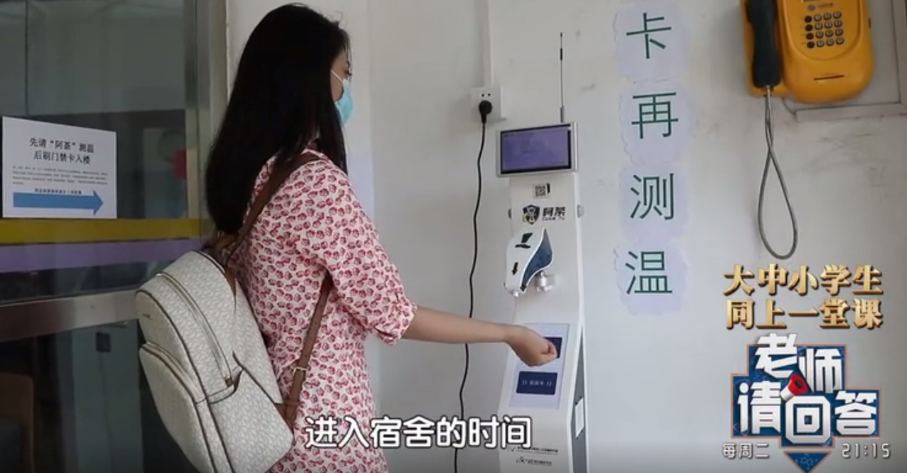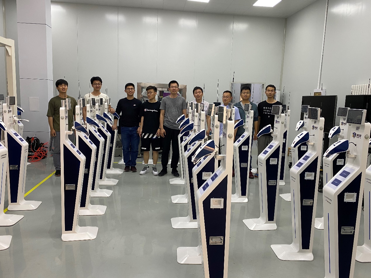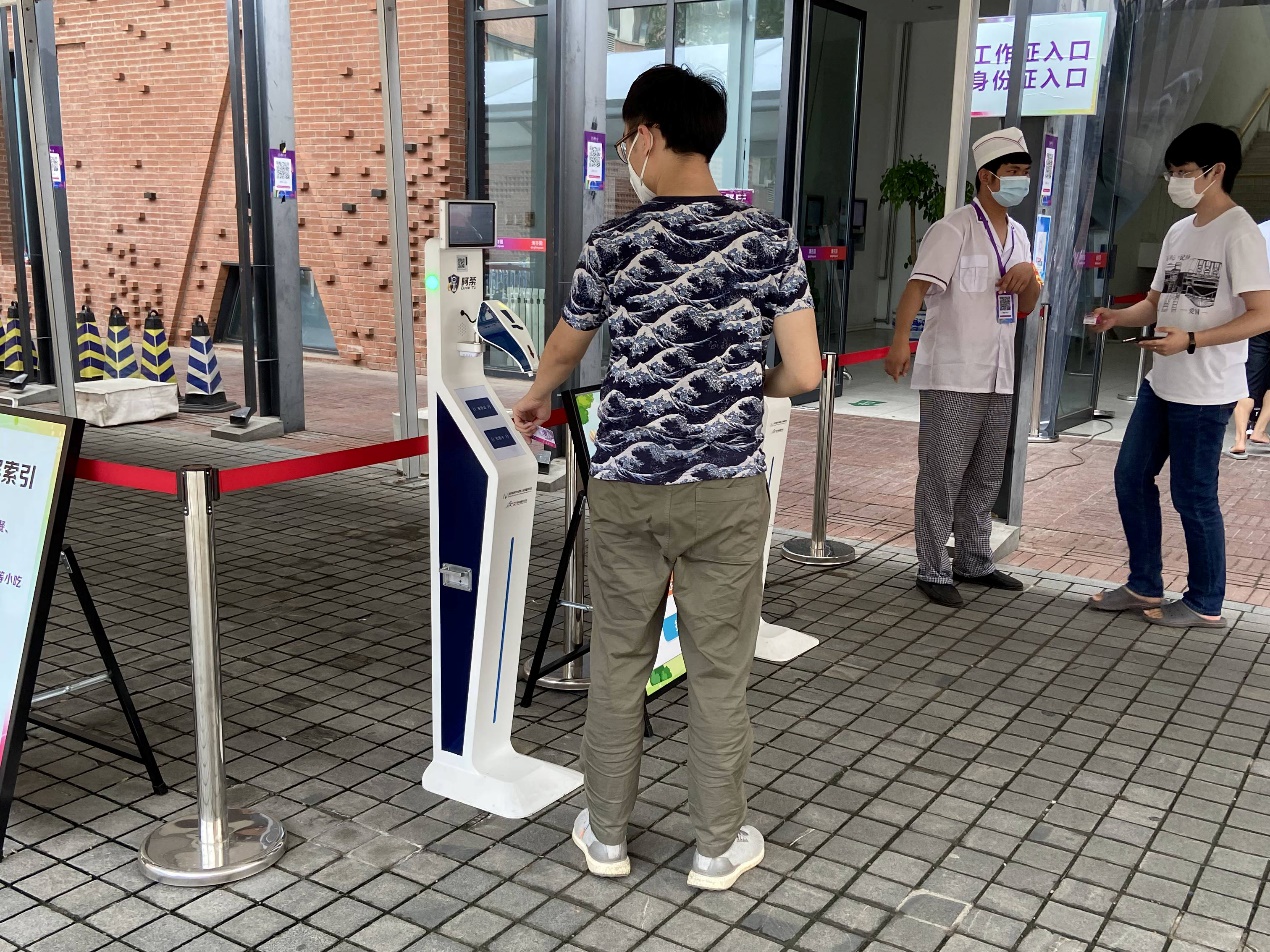 5月中旬,鉴于阿荼机器人的良好使用效果,beat365英国官方网站伸来橄榄枝,并提出了测温和身份识别结合的功能需求。宫昭、邵琦等积极与学校沟通,调整设计方案,并于当月底完成研制,将第一台可同时实现校园卡、身份证、紫荆码识别和体温检测多重功能的阿荼送到了清华。之后的一个月,接受过检阅和实际考验的阿荼在清华园中接连迎来了它的兄弟姐妹。截至目前,90余台阿荼机器人活跃在beat365英国官方网站办公楼、宿舍、食堂、校医院的门口,为校内师生和来访人员提供服务。