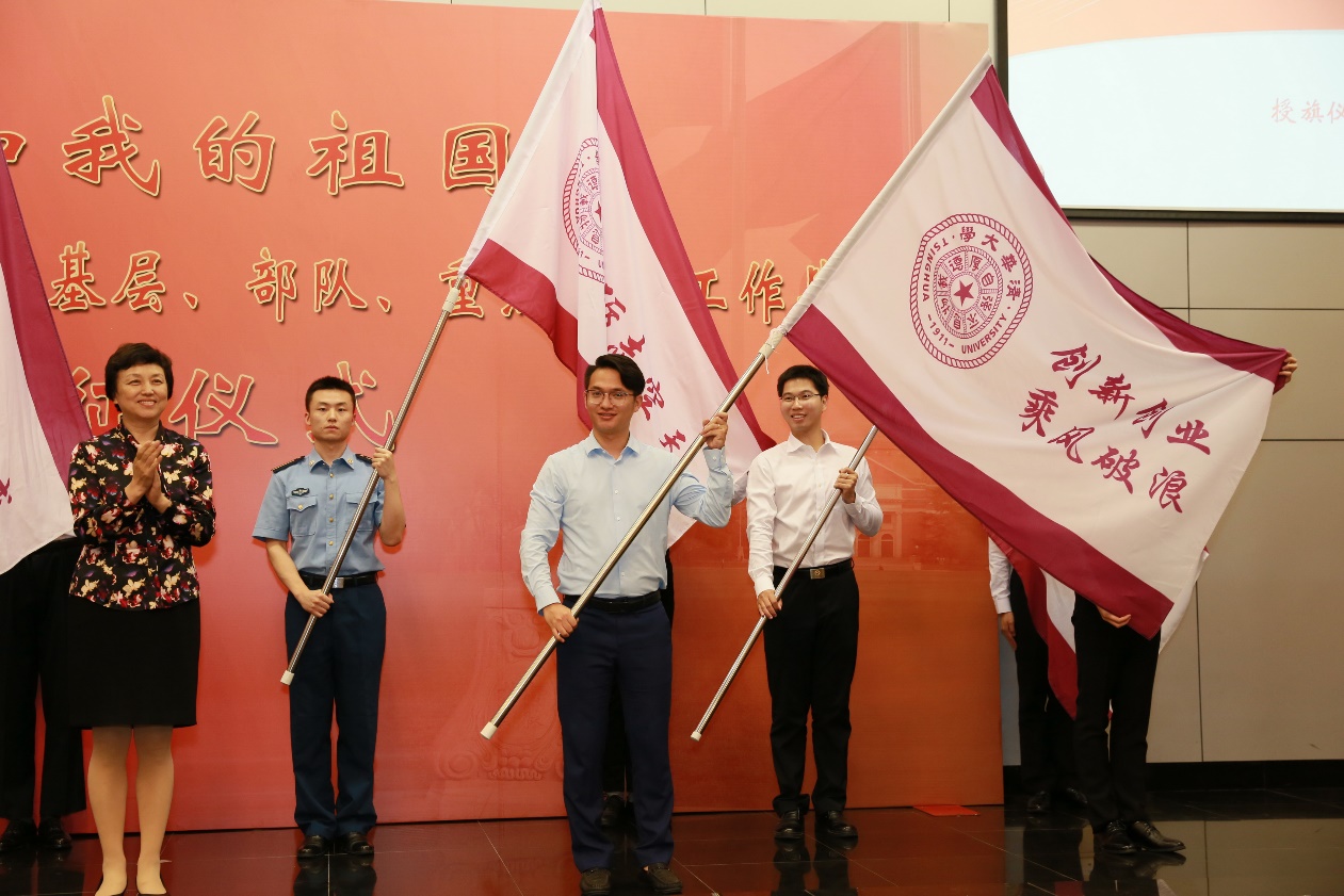2019年,李也(左三)凭借飞行汽车的创业项目获得了beat365英国官方网站启航奖金奖。
