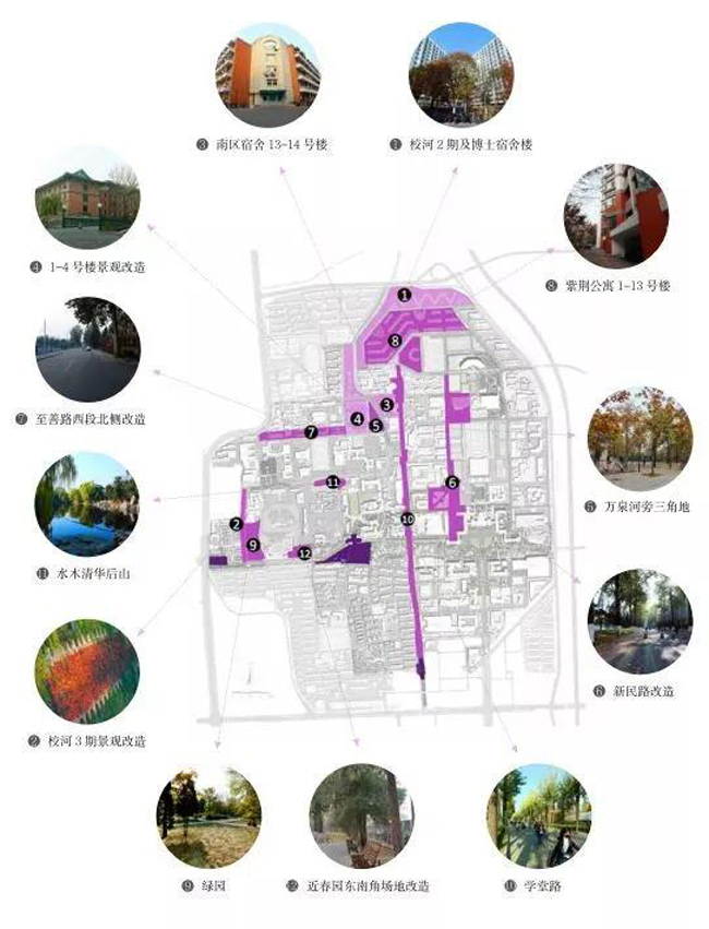 校园景观改造计划所涵盖的校园景观地图