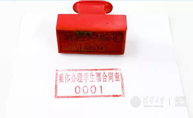 0001号订票印章与清华师生顺利回家过年有着密切的关系。在网络还不是很发达的年代,一到春运高峰,回家的车票便成了学生们最为难的事情。千禧年春节,距离放假日期非常近,物业中心孙焕明老师在北京站,冒着严寒,带着暖瓶、马扎、烧饼夹肉等“家伙事儿”,替学生订票排队排了4天3宿。后来,铁道部实行了订票合同制,孙焕明老师又排队排了两天两宿,第一个签订了订票合同,拿下了这枚0001号订票印章,大大方便了学生以后的订票,保证了票源充足,让每个学生都能回家过年。