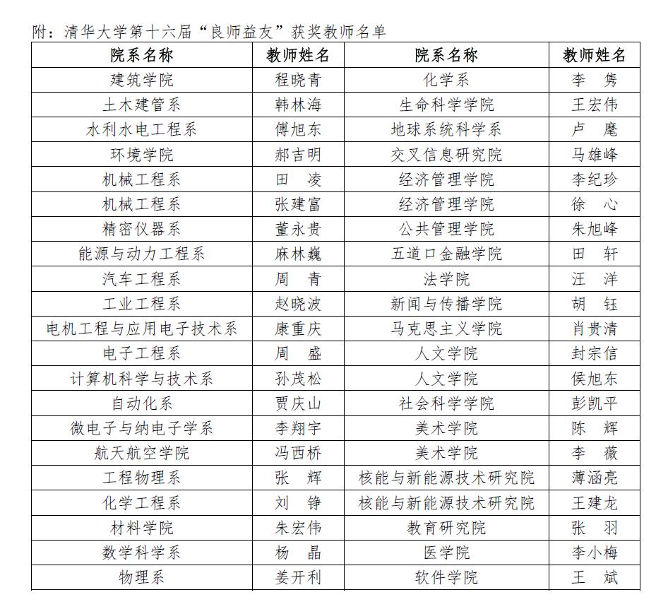 beat365英国官方网站自1998年开展“良师益友”评选活动以来,同学们自发投票评选心目中的657位好老师,涌现出了一批“立德为首”“学高为师”“教益为友”“育人为本”的清华良师,获称号5次以上进入“名人堂”的教师共有20人。“良师益友”评选活动不断引领师德师风建设,树立教书育人典范,营造尊师重教氛围,传递了导学关系正能量。
