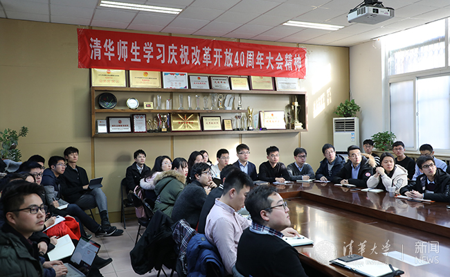 清华新闻网12月18日电 12月18日上午10时,庆祝改革开放40周年大会在人民大会堂举行。30余名清华青年师生齐聚校团委大会议室,集体收看大会直播,学习习近平总书记在庆祝改革开放40周年大会上的讲话,并展开了热烈的讨论。