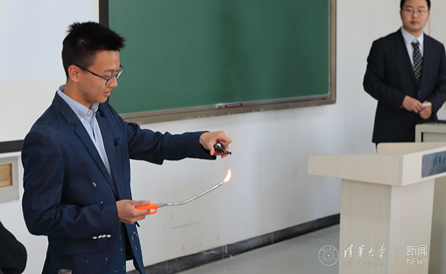 材料学院2017级本科生武益阳及其团队巧妙地运用半导体制冷片的塞贝克效应制作了一款能够为手机电池保温的手机壳,防止手机在寒冷的室外自动关机或无法充电,其创新的设计和巧妙的构思得到了在场评委的一致好评。