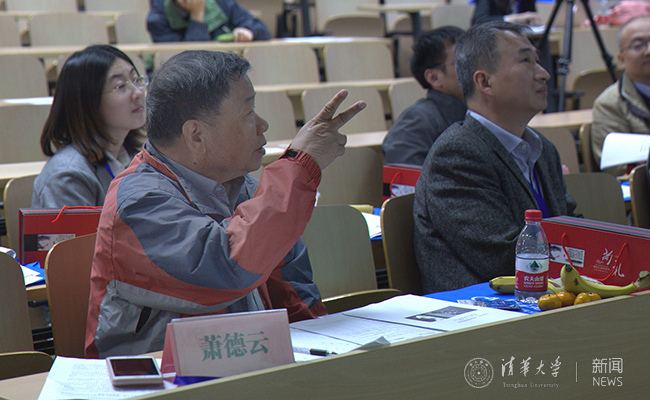 在评审现场,各位评委专家与选手频频互动,展开热烈讨论。在环保建设分场,评委会主席、水利系杨大文教授肯定了选手们的创意,同时对许多作品都提出了宝贵的改进意见;在信息技术分场,年逾古稀的自动化系老教授萧德云一直认真听取选手答辩,不时和选手展开讨论,并详细询问项目开展情况。