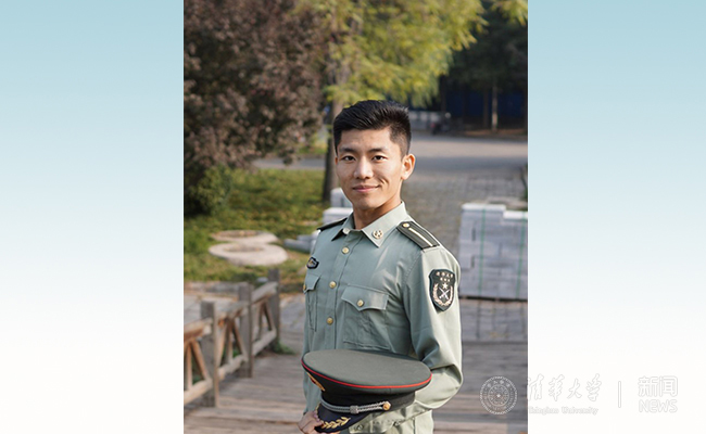 学堂路两旁林立的2017年清华特奖候选人海报中,一位身着军装、目视远方,敬着标准军礼的学生格外引人注目,他是航天航空学院的李晨宁。作为清华园中的国防生,他是学生,是战士,也是强军人。