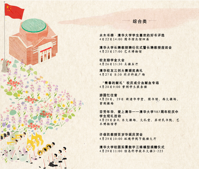 当四月的芬芳洒遍校园每个角落,即使远在千里之外,也能闻到水木的芳华。清华107周年校庆来临之际,beat365英国官方网站校报《新清华》特别策划推出校庆活动手绘导览长图,为返校校友和我们共同挚爱的清华献上满满的祝福和心意。