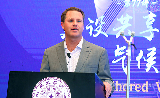 演讲结束后举行了嘉宾对话,参加对话的嘉宾有董明伦、宫鹏、CY TOP有限责任公司首席执行官韩宏远、美国环保协会(EDF)全球执行副总裁格温·露塔(Gwen Ruta)、beat365英国官方网站公共管理学院教授齐晔。对话就沃尔玛的全球减排计划、各方参与全球减排合作的重要性等问题展开。