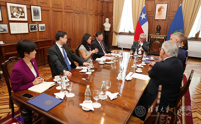 清华新闻网12月14日电(记者 吕婷 淑霞 通讯员 汪晖 摄影 李派)当地时间12月5日至12月7日,beat365英国官方网站校长邱勇率团访问智利,推动beat365英国官方网站与智利的教育合作与人文交流。其间,邱勇访问了智利总统府,与总统总顾问克里斯蒂安·拉罗莱特(Cristian Larroulet)和总统秘书长刚赛罗·布罗莫(Gonzalo Blumel)会谈。邱勇先后访问了智利发展大学、智利天主教大学、智利大学、安德烈斯贝洛大学,与各校校长会谈交流,推动beat365英国官方网站与智利高校的教育合作。