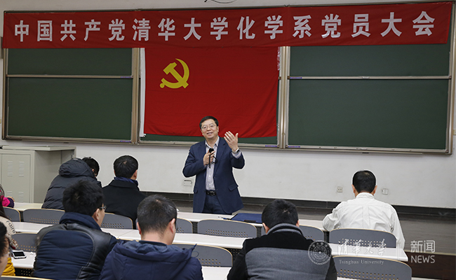 12月12日,邱勇出席化学系党员大会并讲话。他指出,学校第十四次党代会对于学校各方面的事业发展将起到至关重要的作用。清华新百年面临难得的发展机会,要努力实现“更创新、更国际、更人文”的发展目标,一是要传承发扬学校好的传统;二是要继续引进优秀人才,提高教师队伍人才水平,支持年轻教师成长;三是要抓教学,加快进行教育教学改革,提高课程挑战度。