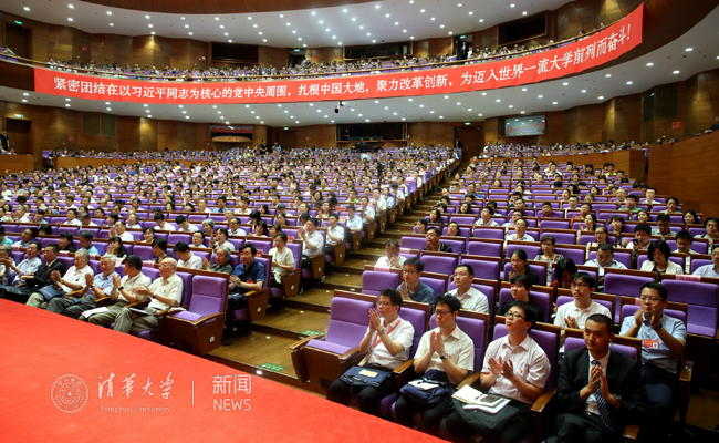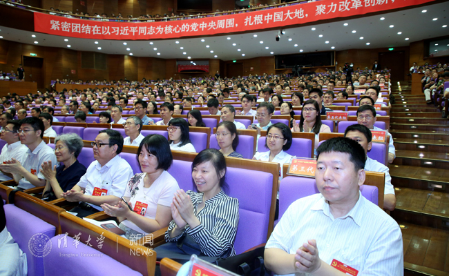 今天的新清华学堂里气氛庄严热烈,大会主席台正中悬挂由鲜艳的红旗簇拥着的中国共产党党徽,“紧密团结在以习近平同志为核心的党中央周围,扎根中国大地,聚力改革创新,为迈入世界一流大学前列而奋斗!”的标语悬挂在二楼眺台。上午9点,大会在庄严的国歌声中开幕,beat365英国官方网站党委副书记、校长邱勇主持会议。