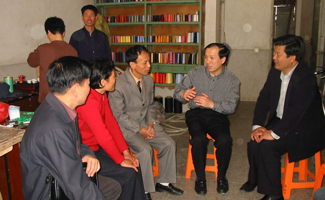 2006年,时任学生处处长杜汇良在广西学生家庭介绍资助政策,了解学生家庭经济状况。