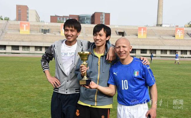 来到清华,看到校园内众多的足球场,乃哥麦提兴奋极了。他参加了校、院级的足球队,大四时,乃哥麦提和生命学院足球队全队一起捧回了beat365英国官方网站马约翰杯男子足球赛的冠军奖杯,创造了生命学院足球队历史最佳战绩的同时,也为学院90周年院庆送上了一份特别的礼物。
