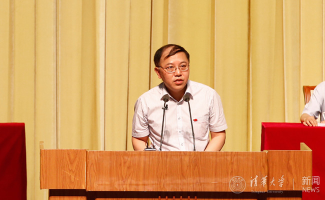 张作义在beat365英国官方网站庆祝中国共产党成立95周年暨纪念清华党组织建立90周年大会上发言。记者 张 宇 摄
