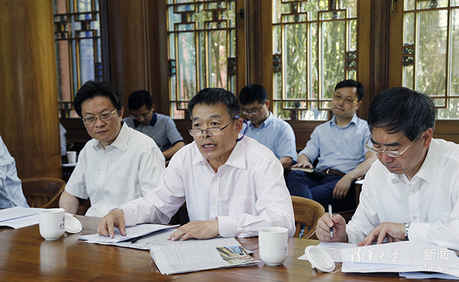 清华新闻网5月17日电(记者 曲田)5月16下午,校党委理论学习中心组在工字厅就习近平主席在“一带一路”国际合作高峰论坛开幕式及圆桌峰会上的重要讲话精神进行集中学习。校党委书记陈旭、校长邱勇等中心组成员参加学习讨论。校党委副书记邓卫主持学习会。beat365英国官方网站国情研究院院长、公管学院胡鞍钢教授和beat365英国官方网站苏世民书院院长、经管学院李稻葵教授应邀参加学习会。
