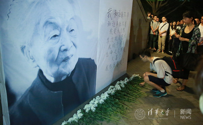清华新闻网5月26日电 2016年5月25日凌晨,杨绛先生因病去世,享年105岁。25日当晚21:00,清华师生自发来到先生挚爱的清华图书馆老馆前广场,点燃蜡烛,敬献鲜花,寄托哀思。