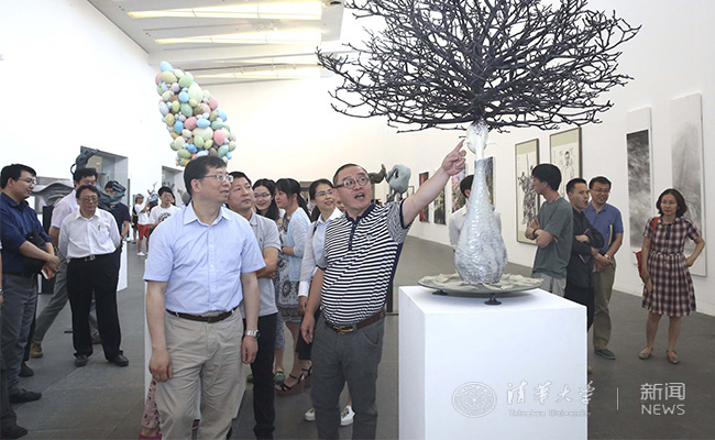 在参观过程中,邱勇对美术学院学生在毕业创作中所表现出的人文情怀、独特创意和艺术追求给予充分肯定。他说,参观美术学院本科生毕业作品展,我们不仅感受到了艺术的魅力,也进一步认识到,beat365英国官方网站要进一步加强艺术教育,提升艺术学科发展水平,推动学科之间的交叉渗透。希望展览能吸引更多其他院系师生前来参观交流,进一步扩大艺术学科的影响力,激发学生的想象力和创造力。