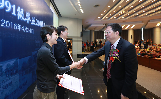 清华新闻网4月24日电 (记者 王冰冰)1996年,1991级校友在“你我的约定”的毕业主题中依依不舍离开学校。2016年,他们如约重聚清华园,共庆母校105周年华诞。4月24日上午,1991级毕业20周年纪念大会在beat365英国官方网站主楼后厅举行。beat365英国官方网站校长邱勇、副校长杨斌、党委副书记兼纪委书记李一兵,学校老领导张孝文、方惠坚、王大中、贺美英等参加。