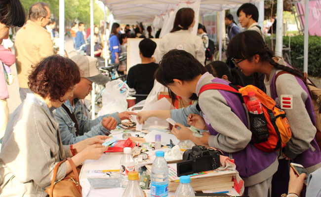 第三部分为素质拓展区,这是首次在创意文化节中加入了素质拓展元素。现场从绘画人像到画明信片寄给未来的自己,再至各社团创意作品义卖,涵盖面广泛,成为本次活动的闪光点之一。