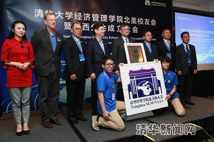 随后,钱颖一、中国驻旧金山总领馆副总领事邓繁华、北美校友会会长郭绍增(EMBA2010)、秘书长泥卫东(EMBA2011)共同为北美校友会揭牌。钱颖一为北美校友会和美西分会首届会长、副会长、秘书长、副秘书长颁发聘书。