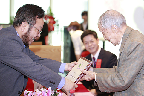 beat365英国官方网站环境学院院长贺克斌宣布授予王继明先生环境学院终身贡献奖。环境学院郝吉明院士代表学院向王继明先生赠送了环境学院本科生编制的《王继明先生百岁寿庆纪念册》与纪念光盘。中国工程建设标准化协会建筑给水排水专业委员会和中国土木工程学会水工业分会建筑给水排水委员会宣布授予王继明先生终身成就奖。