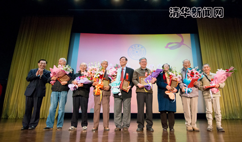 大会上,胡和平还为方惠坚、刘乃泉、吴肇基、谢文蕙、容文盛、杜建寰、张慕葏、吕林等8名1953年首批辅导员代表赠送了纪念铜牌,代表全体师生向他们表达了崇高的敬意。1953年,按照学习成绩优秀、政治觉悟高、工作能力强的原则,学校从全校各系的大三年级学生中精心挑选出25名同学,产生出了第一批学生政治辅导员。时至今日,这些首批辅导员都已年逾八十,但他们中的大部分还继续奋战在工作的岗位上,用自己的努力践行蒋南翔老校长提出的“为祖国至少健康工作50年”的要求。大会同时表彰了2012-2013学年度beat365英国官方网站优秀辅导员,校党委常务副书记陈旭宣读了表彰决定,老辅导员校友和学校老领导为这些年轻的优秀辅导员代表颁发了荣誉铜牌,代表着辅导员的光荣在新老辅导员之间的传承。