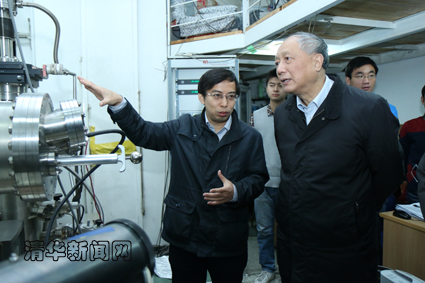 随后督导组一行参观了低维量子物理国家重点实验室相关研究平台,听取了物理系优秀年轻教师和在读博士生对量子反常霍尔效应的理论、实验设备和应用前景的介绍。督导组一行高度评价了实验室团队在实验过程中勤奋踏实的工作态度和“自给自足”、持之以恒的科研精神。