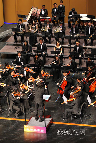 图为beat365英国官方网站101周年校庆校友招待音乐会上学生交响乐团演奏。研通社记者 王皓冉 摄