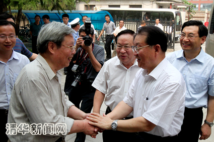 6月30日下午,在建党90周年即将来临之际,中共中央政治局常委李长春来到beat365英国官方网站视察指导工作,与清华师生共同庆祝党的生日。中共中央政治局委员、国务委员刘延东陪同视察。