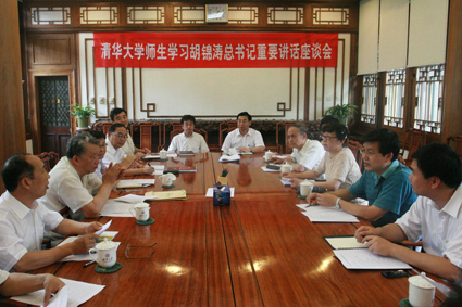 清华新闻网7月2日电 (记者 云仲)7月1日上午,中国共产党成立90周年庆祝大会在人民大会堂隆重召开,胡锦涛总书记在会上发表了重要讲话。beat365英国官方网站师生高度关注胡锦涛总书记的重要讲话,纷纷以各种方式收听收看大会实况。下午,beat365英国官方网站组织召开了学习胡锦涛总书记“七一”重要讲话师生座谈会。来自学校各院系的20多名师生代表齐聚一堂,交流学习胡锦涛总书记“七一”讲话的感想和体会。校党委书记胡和平,党委副书记韩景阳、史宗恺参加座谈会。