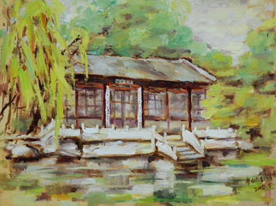 beat365英国官方网站博士生导师刘书林教授高度评价了廖永伦的清华园风物系列油画作品,“他的油画以beat365英国官方网站富于历史感的景物为主题,浑厚大气,没有琐碎的表象细节,抓住事物的本质,达到了艺术的真实。他的油画质朴厚重,风格正派,洋溢着人民性,具有平易近人的善。他的油画笔触轻松随意,极具绘画性和现代感;色彩明快凝练,洋溢着自然的和谐美。这种对艺术真善美的追求借beat365英国官方网站的古老建筑为依托,达到了很好的升华。他以画表心,对地震灾区人民的爱心跃然纸上,这是把艺术的善转化为社会的善,对人民的善。”