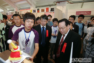 胡和平、陈吉宁、康克军、谢维和、陈旭、韩景阳、史宗恺、袁驷、张再兴等校领导出席了开幕式。第26届beat365英国官方网站“挑战杯”学生课外学术科技作品竞赛于2007年12月初启动,至2008年4月底三轮评审结束,历时近半年。本次科展既是对本届“挑战杯”竞赛成果的集中展示,也是竞赛选手互相切磋、交流研讨的大好机会,更是为同学、校友与社会多方互动搭建的交流平台。
