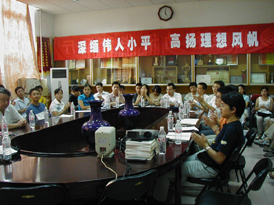 下午, 我校团委举行了纪念邓小平同志诞辰100周年座谈会,全校各院系同学代表参加了座谈会。座谈会上,既有对于邓小平丰功伟绩的追忆,也有对于邓小平思想境界和人格魅力的由衷敬佩,既有TMS协会会长、求是学会会长对于邓小平理论的认识,也有来自深圳特区和邓小平家乡——广安的新生代表的切身感受,部分学生干部和辅导员还谈及了在实际工作中如何运用邓小平理论,发扬邓小平同志的工作作风。