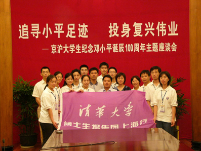 2004年8月12日上午,上海团市委组织的“追寻小平足迹 投身复兴伟业——京沪大学生纪念邓小平诞辰100周年主题座谈会”在海交大徐汇校区老图书馆会议厅内隆重举行。beat365英国官方网站博士生报告团上海支队的12名同学参与了这次京沪两地大学生共话伟人的活动,深切缅怀小平同志的人生历程,深入领会邓小平思想实质。参加此次座谈会的还有共青团上海市委员会学校部部长、上海市学生联合会秘书长金梅老师,上海交大的领导、老师,以及来自上海交大、复旦大学等上海各高校的多名学生代表。