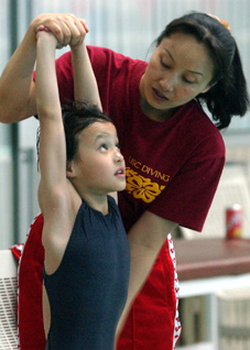 见到熊晴清是在跳水队的初中自习室里,因为腰部劳损,她刚刚看了医生,正准备去训练。不到十六岁的她已经是清华跳水队最老的队员之一。“我1997年就来过一次清华,那时候跳水队还没有成立。”98年,跳水队招进第一批队员,熊晴清从老家湖北沙市来到清华园。六年来,她没有回过一次家,每年春节的时候,父母都过来,一家人就在北京过年。即使在过年的那几天里,每天下午熊晴清还是要参加队里的训练。目前跳水队有20余名队员,他们大多数和熊晴清的情况差不多。