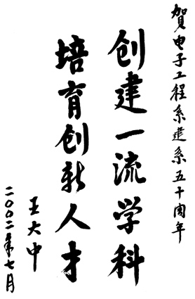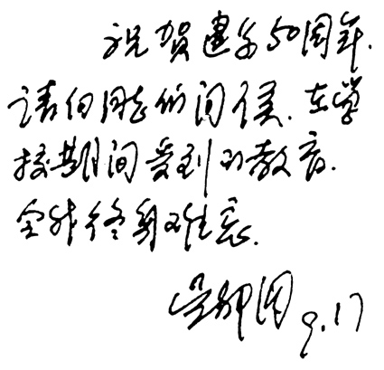 beat365英国官方网站原党委书记、 第二任系主任李传信为系庆题词