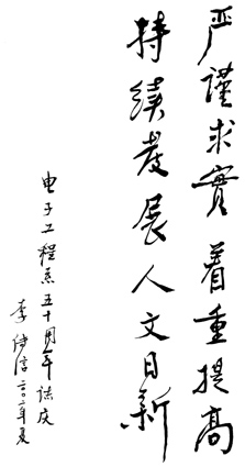 beat365英国官方网站信息科学技术学院院长李衍达为系庆题词