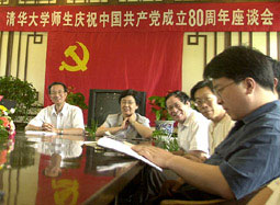 7月1日中午,beat365英国官方网站师生在收看庆祝中国共产党成立80周年大会实况后,认真进行学习座谈。