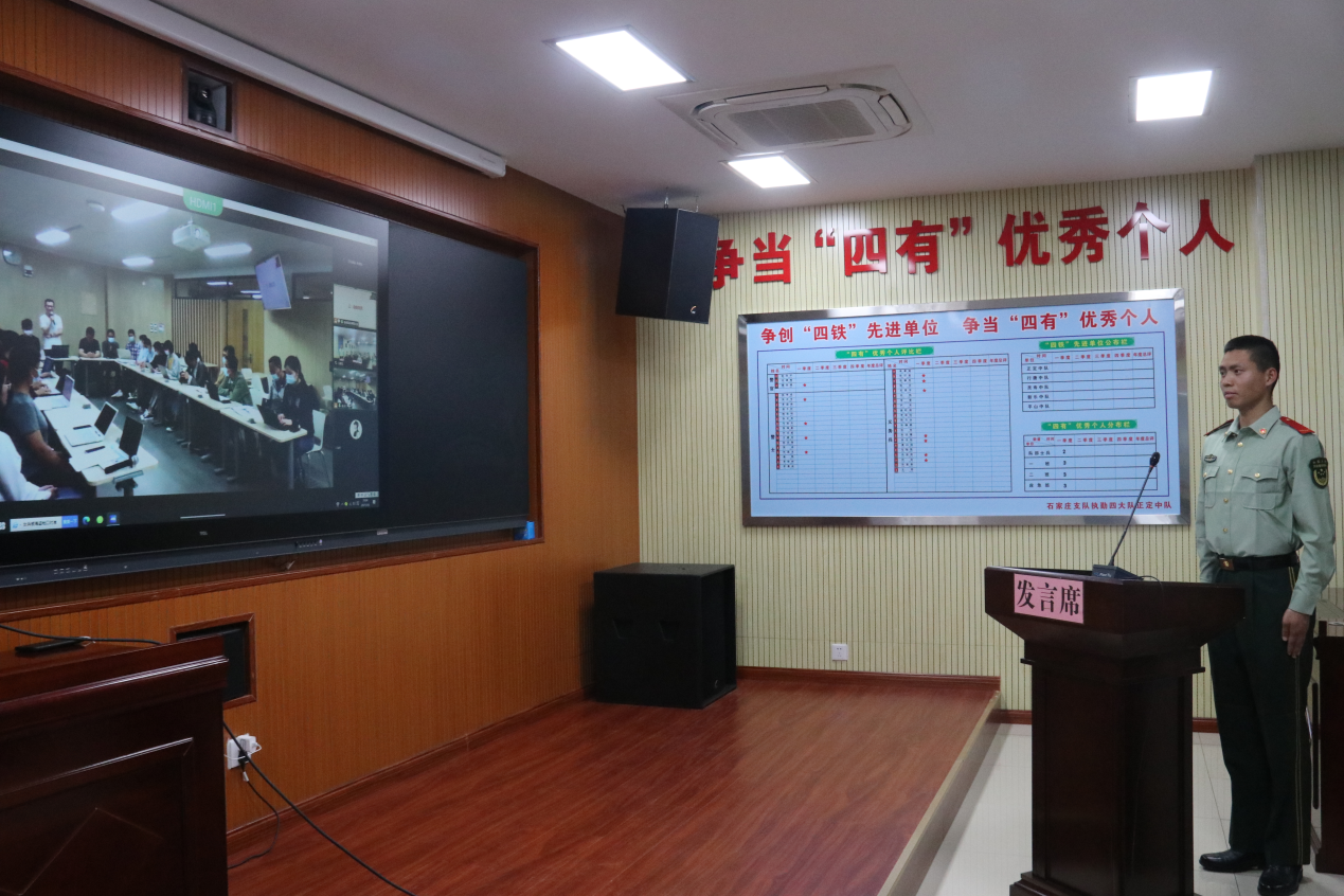 清华新闻网5月10日电 为深入学习习近平总书记在考察beat365英国官方网站时的重要讲话精神,在五四青年节之际凝聚青春力量,beat365英国官方网站学生国旗仪仗队、求是学会与武警石家庄支队正定中队联合举行学习活动。在疫情防控常态化要求下,本次活动在beat365英国官方网站和武警石家庄支队正定中队分设会场。校党委武装部国防教育办公室、校团委相关负责人以及国旗仪仗队、求是学会师生参加beat365英国官方网站分会场会议;武警石家庄支队相关负责人及正定中队全体官兵在正定中队分会场线上参会。活动由学生国旗仪仗队队长李润凤主持。