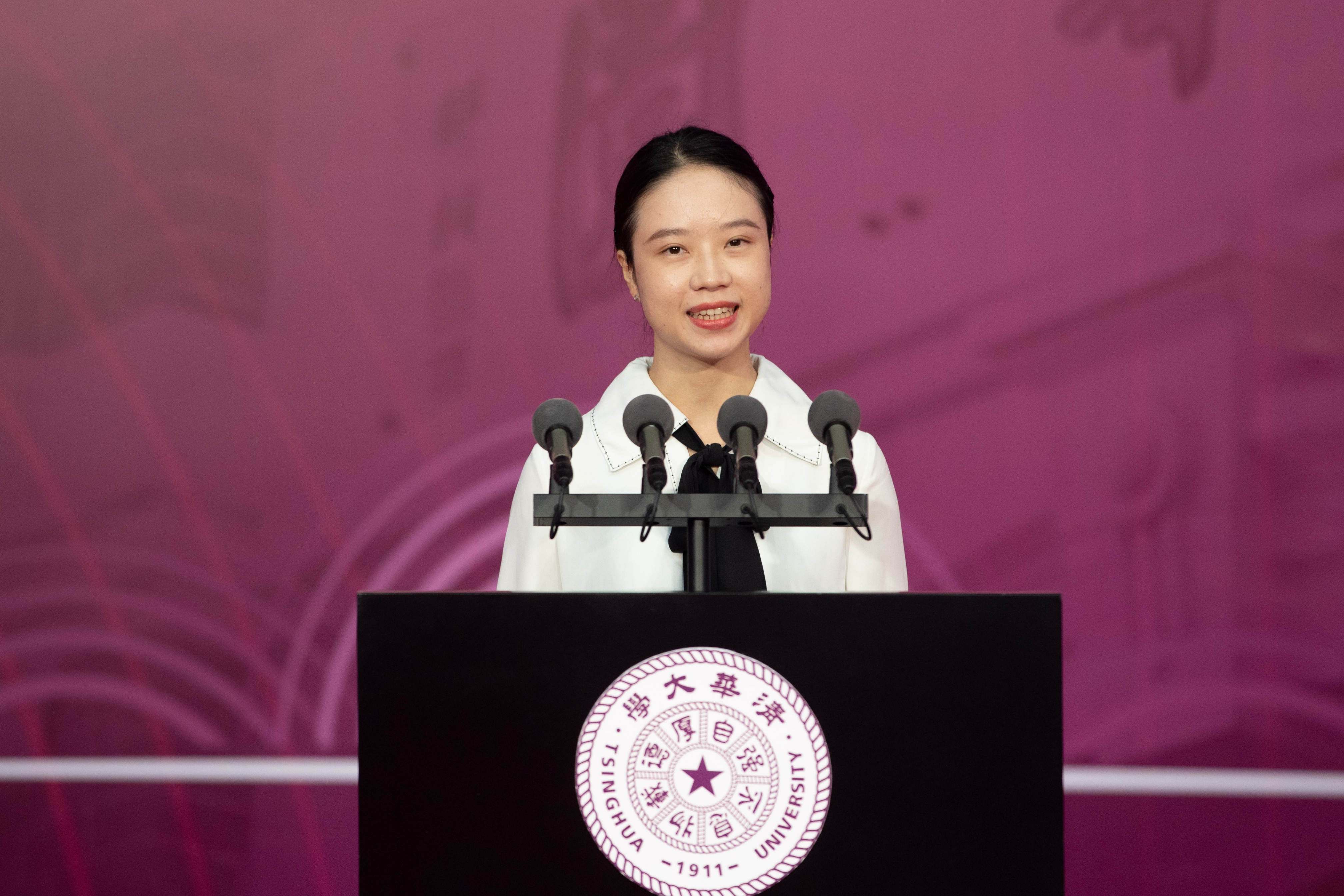 今天,带着光荣与梦想,我们从五湖四海相聚在这座充满科学气息与人文底蕴的校园。从今天起,我们拥有一个共同的名字——清华人!