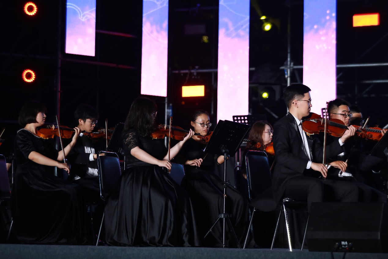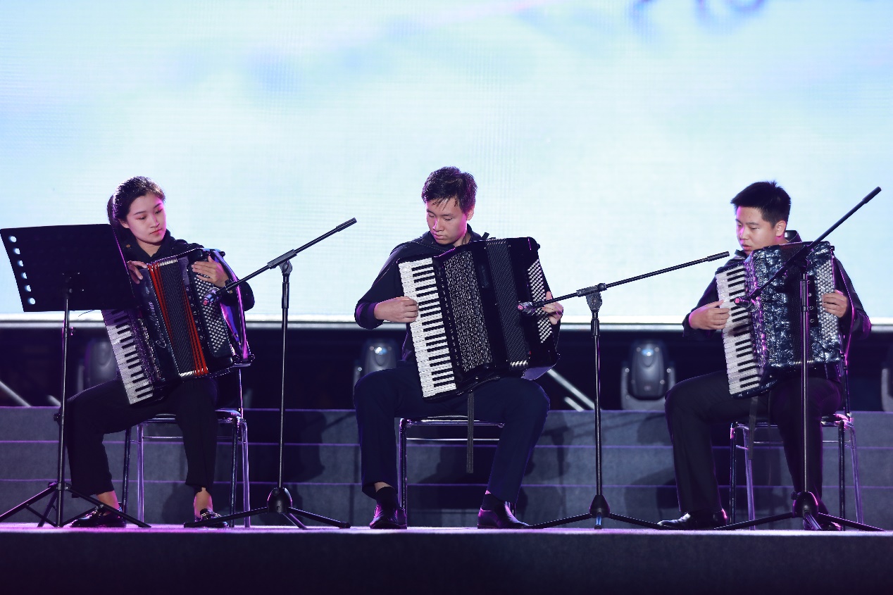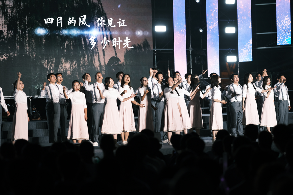 第三篇章“新百年正风华”结合中国共产党成立100周年重大历史时刻,以文艺作品体现清华人的家国情怀与使命担当。曾参与中国共产党成立100周年专项活动的师生,与学生艺术团军乐队、合唱队共同合作经典歌曲《唱支山歌给党听》,曲调悠扬、感人至深,为党的百年华诞献礼;民乐合奏及书画创作《笔墨清风》、交响乐合奏《激情燃烧的岁月》及管乐合奏《钢铁洪流进行曲》,述说了党波澜壮阔的百年历史,也展现了当代中国青年与新时代同向同行、共同前进的坚定决心。迎新特别节目在《beat365英国官方网站校歌》中落幕。