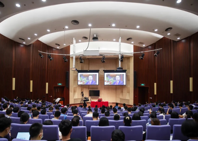 赠书仪式后,陈煜波为全体新生讲授主题党课。他首先对百年未有之大变局作出解读。一方面,面临前所未有的科技革命、产业变革和中国作为新兴大国崛起的历史机遇,同学们生逢盛世。另一方面,后疫情时代的逆全球化和去中国化等带来重大影响,时代对人才培养提出了更高要求,创新人才的培养成为重中之重。他鼓励同学们坚持创新精神和独立思考能力,将来努力成为各行各业的领军人才。