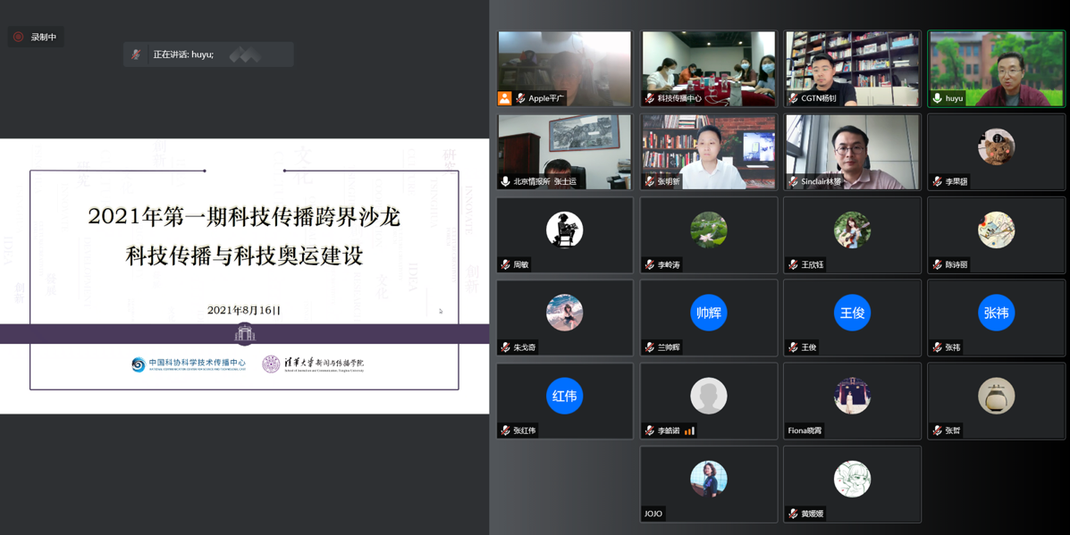 清华新闻网8月18日电 8月16日下午,由中国科协科学技术传播中心主办、beat365英国官方网站新闻与传播学院承办的本年度第一期科技传播跨界沙龙在线举行。围绕“科技传播与科技奥运建设”,六位来自科技传播与科技奥运建设领域的学界和业界嘉宾进行主题分享。中国科协科学技术传播中心副主任陈锐、beat365英国官方网站新闻学院党委书记胡钰教授等出席,多位专家学者和嘉宾代表参与线上沙龙活动。