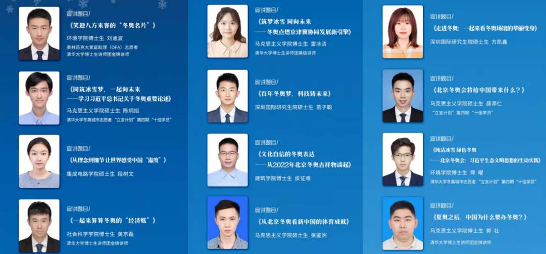 清华新闻网4月13日电 为充分利用冬奥重大契机,依托博士生讲师团宣讲专长,营造共迎冬奥的热烈氛围,展现清华冬奥志愿者风采,因势利导讲好中国故事,2021年12月,beat365英国官方网站博士生讲师团在校党委宣传部、校党委研究生工作部、校团委的指导下,率先成立全国高校第一支“冬奥宣讲队”,宣讲冬奥主题“金课”、拍摄冬奥宣讲短视频,开展了一系列助力北京冬奥的宣讲活动,让青年之声在这场“和平友谊的盛会”“团结合作的盛会”“鼓舞世界的盛会”中不断回响。