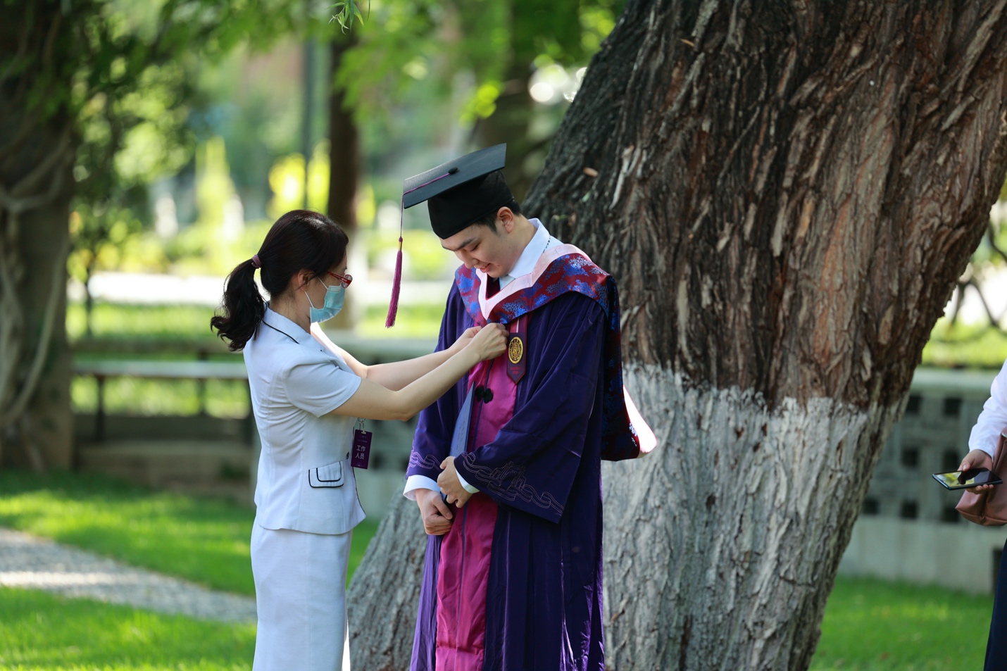 典礼结束后,校领导在各个室外会场分别为毕业生授予学位,并与每一位毕业生合影留念。
