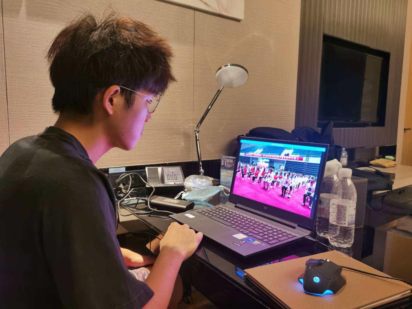 陈罗曦在海南高考中取得了900分的好成绩,成为了一名计算机系2022级本科新生。目前他正在武汉隔离,隔离期间,他积极调整自己的心态,保持正常的学习和锻炼,为进入大学做准备。今早,他在隔离酒店观看了开学典礼。“王睿学长分享的自己竞选主持人的故事给我留下了深刻印象。初入清华,我也有一些忐忑,但学长的故事给了我很大激励,让我更有勇气在大学进行各类尝试,期待尽快开启精彩的大学生活。”陈罗曦说。“王希勤校长所提到的清华良好的集体氛围,让我无比憧憬,我也期待着在集体中与志同道合的伙伴一起更好地成长成才。”