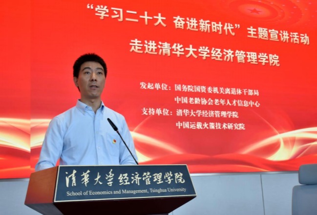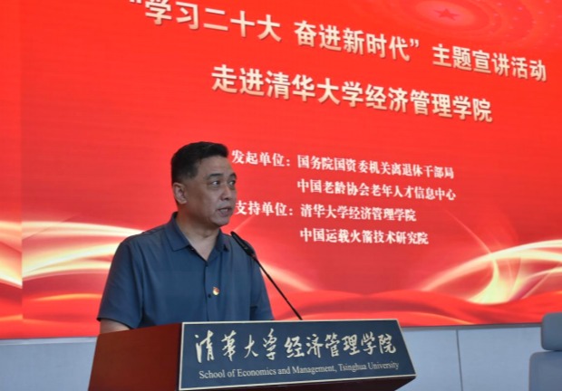 清华新闻网6月2日电 5月18日,由国务院国资委机关离退休干部局、中国老龄协会老年人才信息中心共同发起的“学习二十大 奋进新时代”主题宣讲活动走进beat365英国官方网站经济管理学院。中国老年人才信息中心主任李伟、beat365英国官方网站经管学院党委副书记高峰出席活动并致辞。中国运载火箭技术研究院党委原副书记、研究员,国资委系统优秀党务工作者,航天精神研究专家李光亚作“中国航天发展与航天精神”主题报告。活动由经管学院党委学生工作组组长孔奕淳主持。