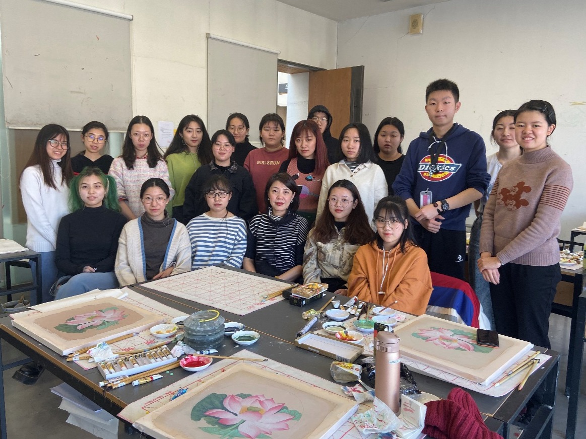 “工笔花鸟”选修课结课时金纳与同学们合影