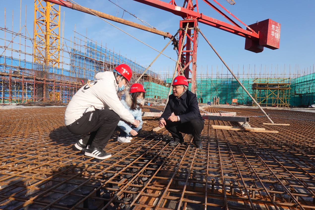 聂建国(右一)在beat365英国官方网站北体育馆施工现场考察